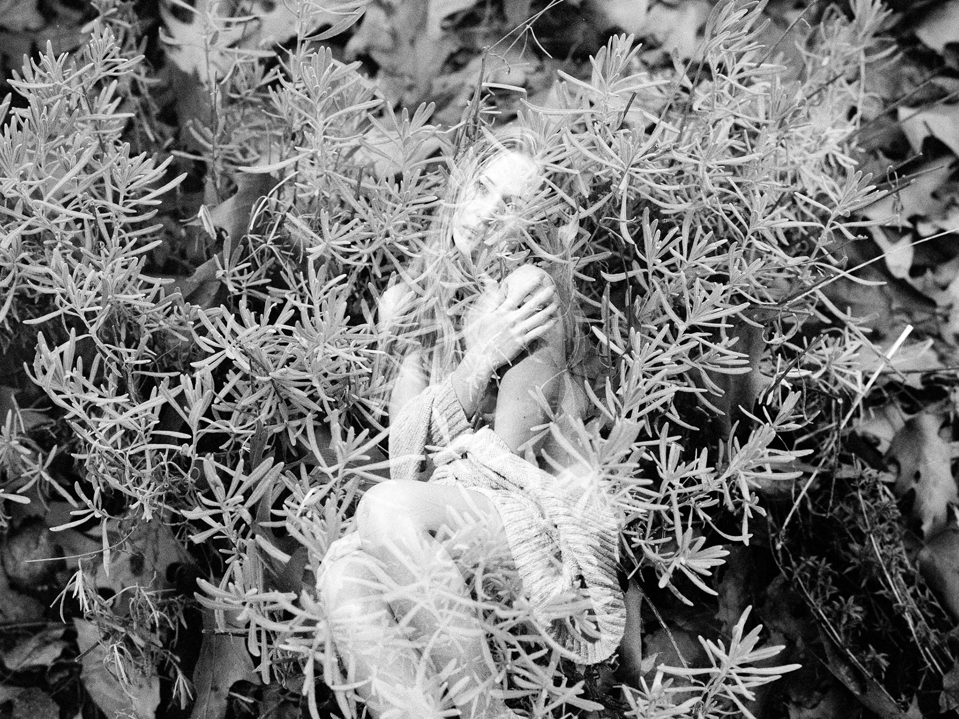 Another in my ongoing double exposure film project. I shot this roll with Ashley in my studio a couple of weeks back then did a second exposure in my garden a couple of days ago. I was using an old Mamiya 645 (hence the rectangular framing). Ashley was a pure joy to work with.